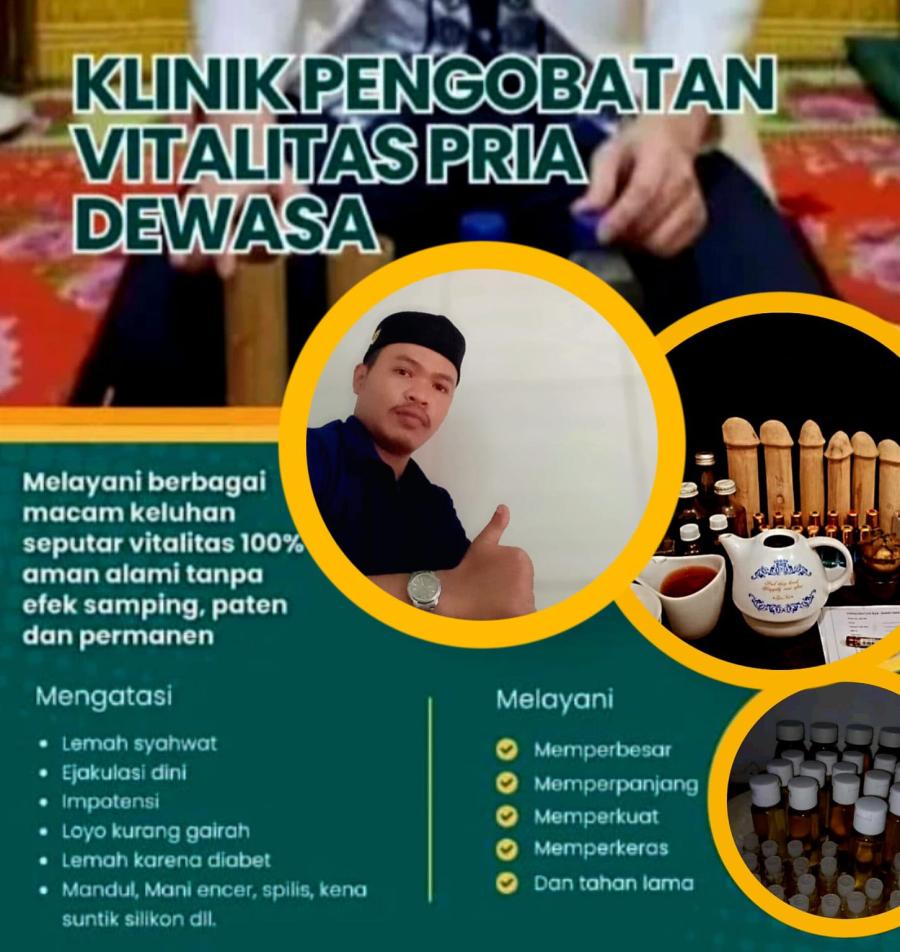 Bagi Anda yang memiliki keluhan terkait vitalitas bisa berkonsultasi langsung ke klinik Aa Pirman yang beralamat di Purnasari III/20A, RT 03/RW 02, Jl. Kaligawe Raya, Terboyo Kulon, Kec. Genuk, Kota Semarang, Jawa Tengah 50228 (Lihat Google Maps).